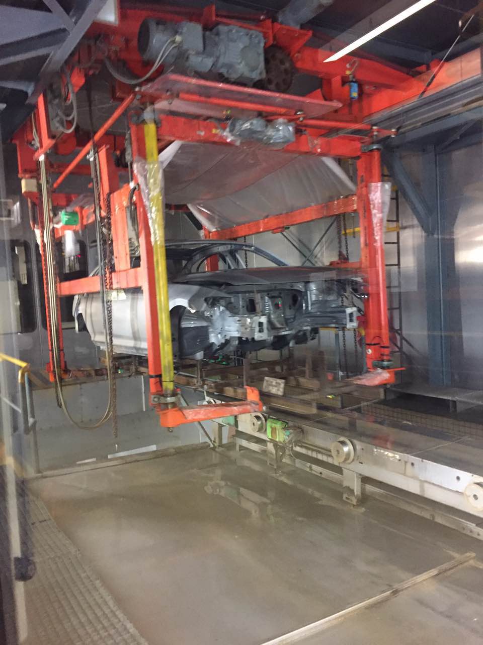 任務描述:將原有的普通碳鋼型底漆區(qū)轉掛機構的軌道,改造為鋁型材,增加軌對軌道上的配件,如行走小車及導向輪道的設計,制造安裝,調整吊具軌道及輥床,保證精度使車身順利轉掛。